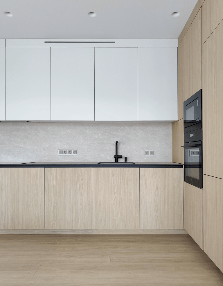 Šis projektas – tai funkcionalumo ir estetikos derinys. Šviesių spalvų fasadai suteikia erdvei jaukumo ir šviesos, o minimalistinis dizainas padeda išlaikyti tvarką bei harmoniją.