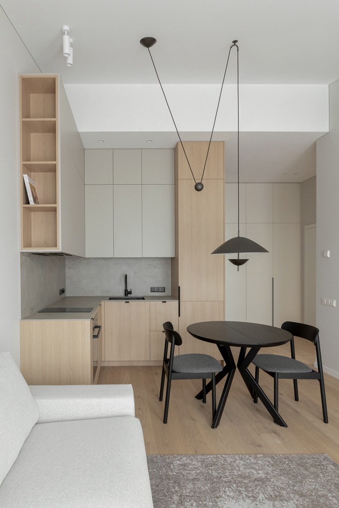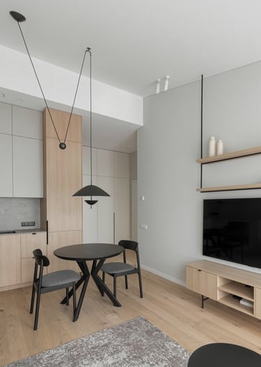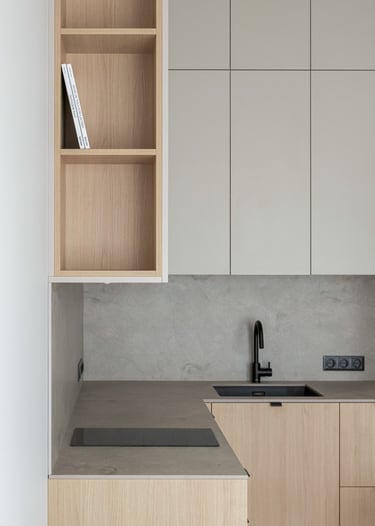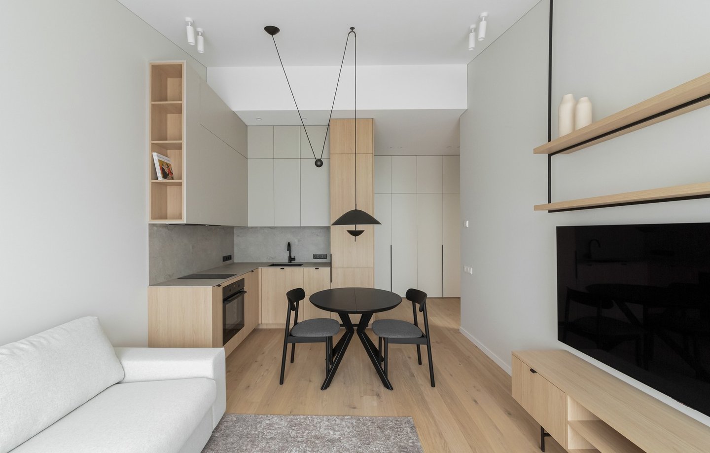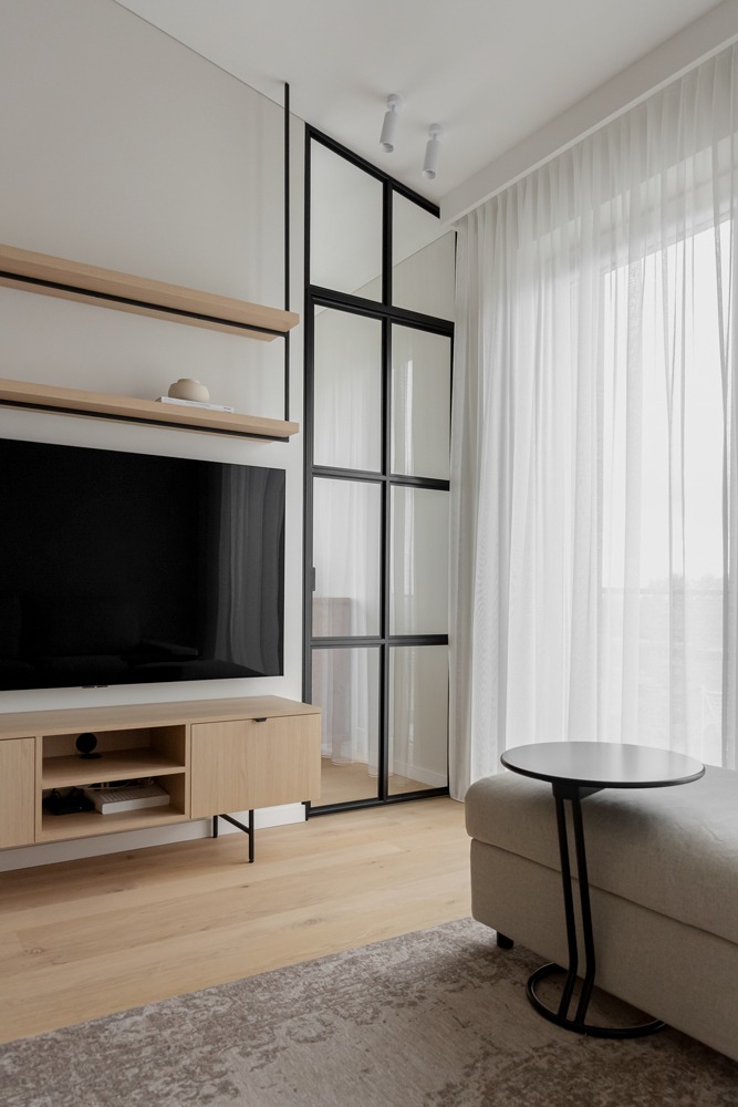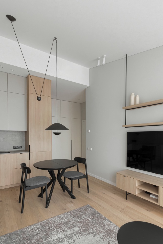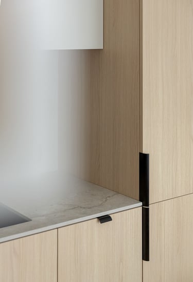 Šviesūs atspalviai, natūralus medžio raštas ir minimalistinis dizainas kuria jaukią, šiltą ir harmoningą atmosferą. Kiekviena detalė čia turi savo vietą – funkcionalu, estetiška ir patogu gyventi kasdien.