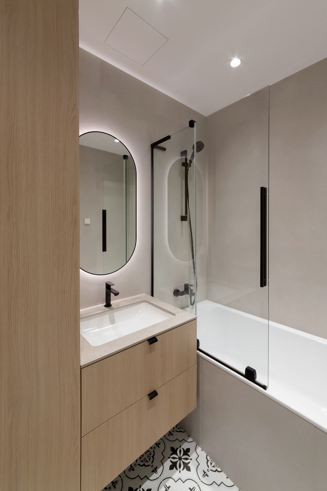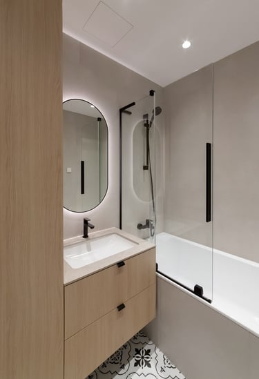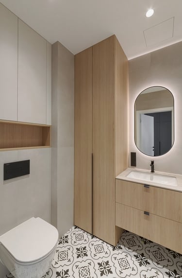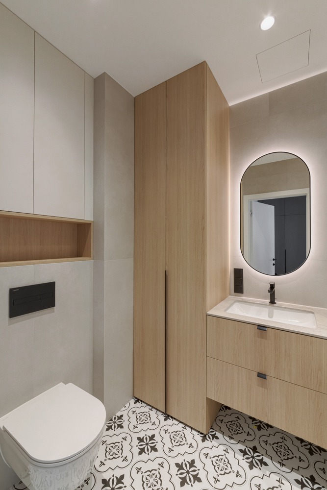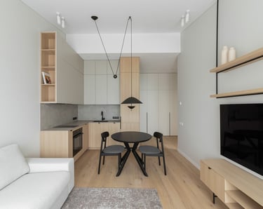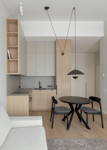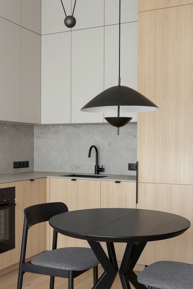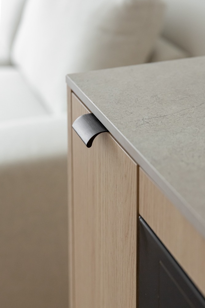 Šviesūs atspalviai, natūralus medžio raštas ir minimalistinis dizainas kuria jaukią, šiltą ir harmoningą atmosferą. Kiekviena detalė čia turi savo vietą – funkcionalu, estetiška ir patogu gyventi kasdien.
