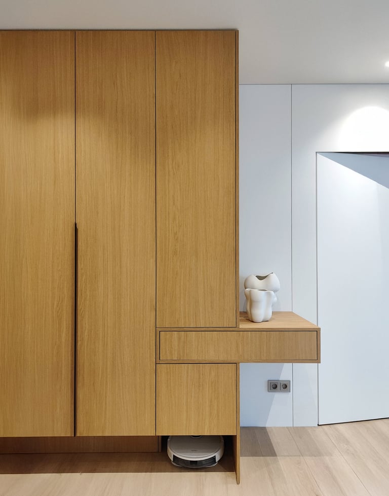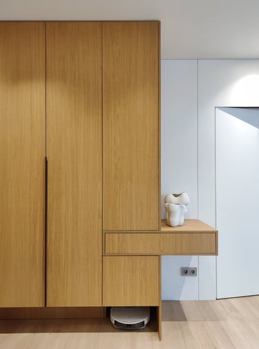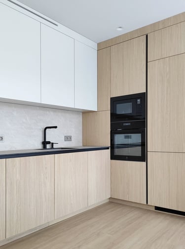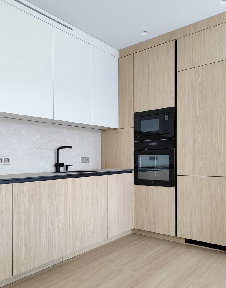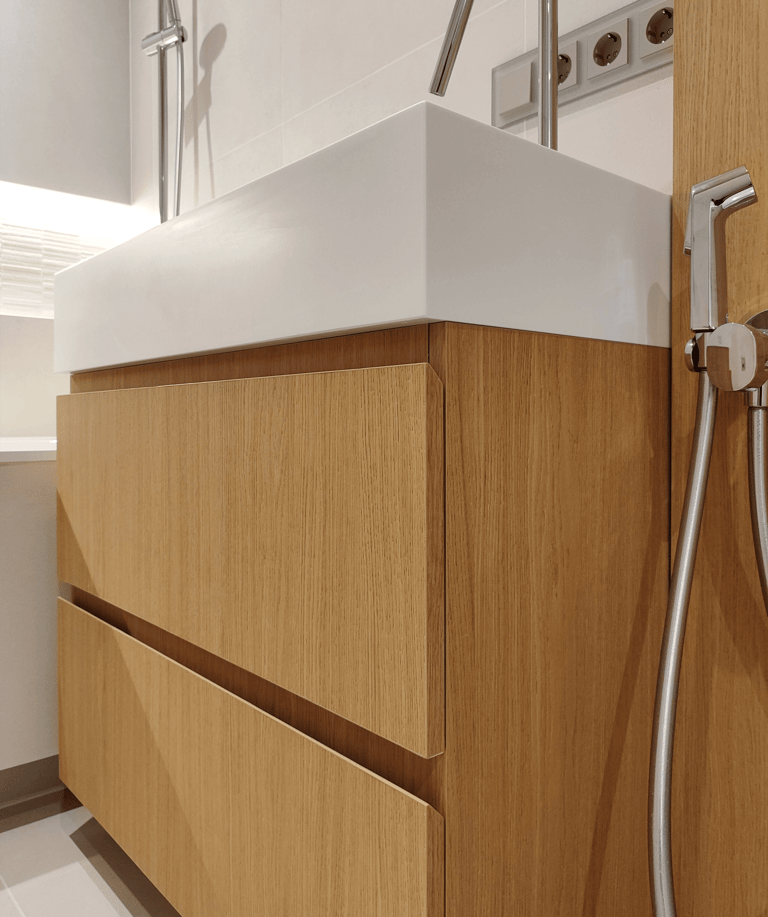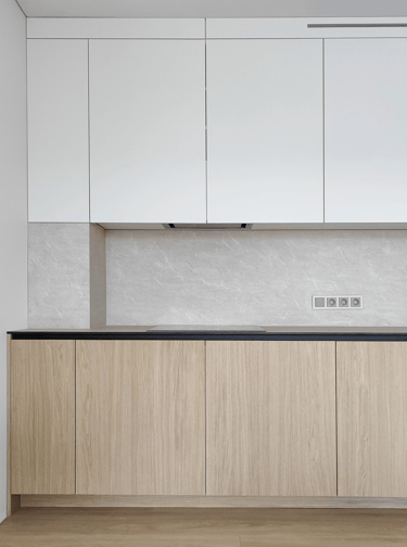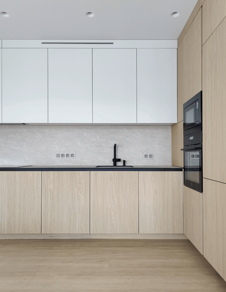 Šis projektas – tai funkcionalumo ir estetikos derinys. Šviesių spalvų fasadai suteikia erdvei jaukumo ir šviesos, o minimalistinis dizainas padeda išlaikyti tvarką bei harmoniją.